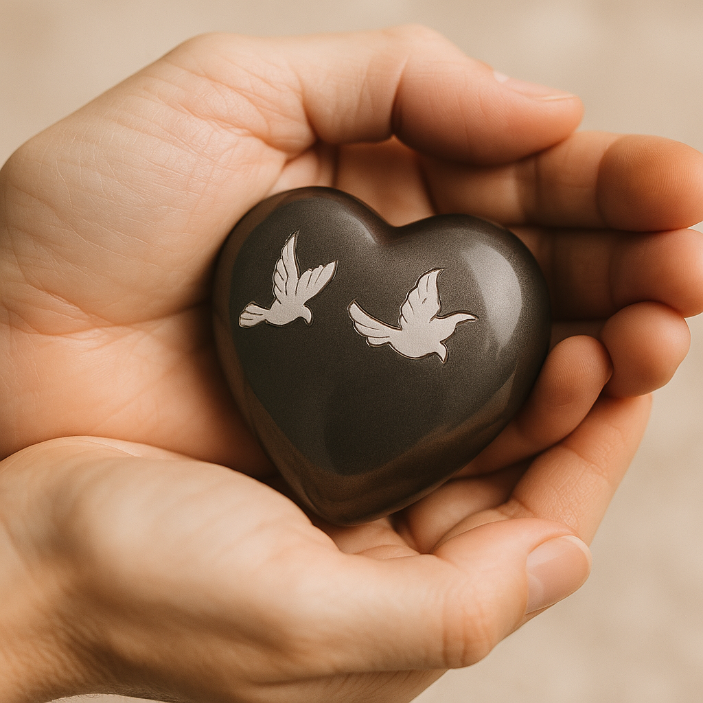 FPU 127 Metall-Andenkenherz wurde als ein intimes und symbolisches Erinnerungsstück gestaltet. Das Herz steht für Liebe, Verbundenheit und bleibende Erinnerungen. Die weiche, abgerundete Form liegt angenehm in der Hand und spendet Trost in Momenten, in denen man Nähe und Halt sucht.