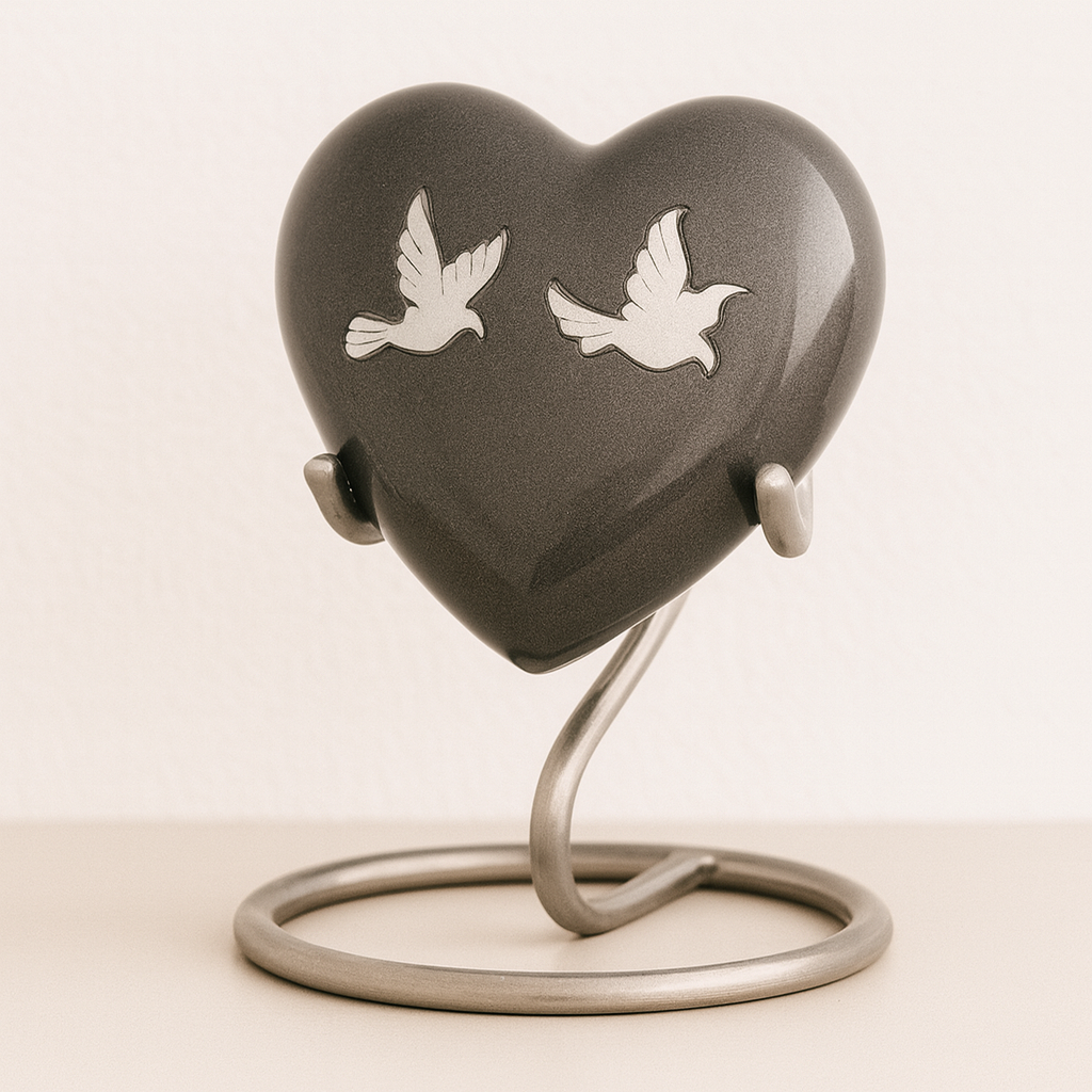 Ein passender Metallständer ist separat erhältlich, sodass das Keepsake-Herz einen schönen und sicheren Platz erhalten kann.