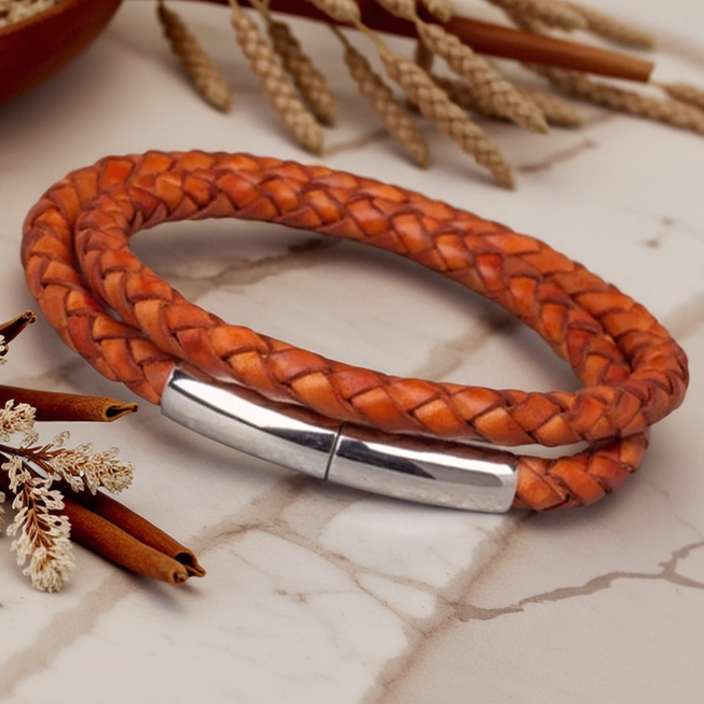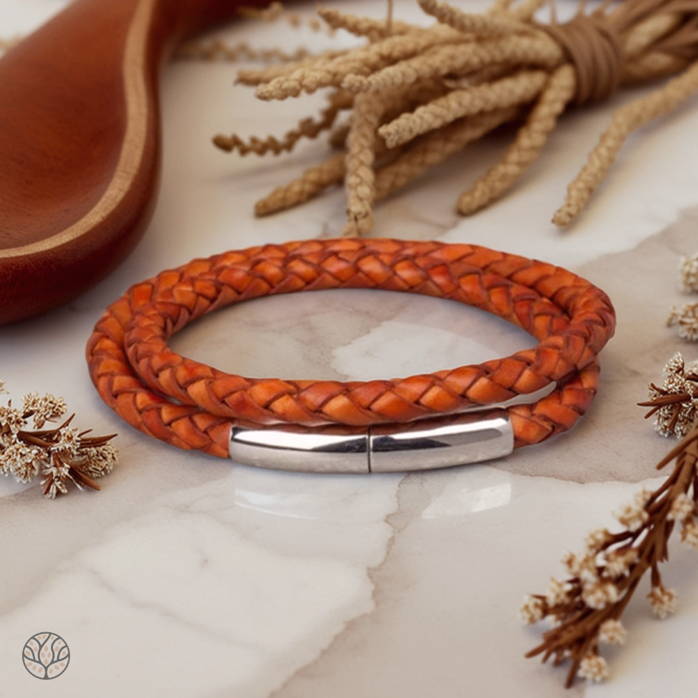 Diese einzigartigen Armbänder, die in Zusammenarbeit mit erfahrenen Designern entworfen wurden, bestehen aus hochwertigem, geflochtenem Echtleder. Das natürliche Material passt sich der Trägerin an, wird mit der Zeit geschmeidiger und entwickelt seinen eigenen Charakter, wodurch jedes Armband persönlich und einzigartig wird.