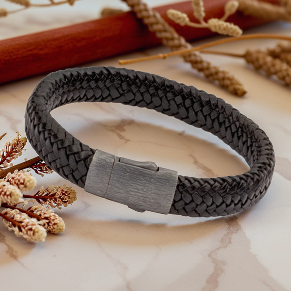 Diese einzigartigen Armbänder, die in Zusammenarbeit mit erfahrenen Designern entworfen wurden, bestehen aus hochwertigem, geflochtenem Echtleder. Das natürliche Material passt sich der Trägerin an, wird mit der Zeit geschmeidiger und entwickelt seinen eigenen Charakter, wodurch jedes Armband persönlich und einzigartig wird.