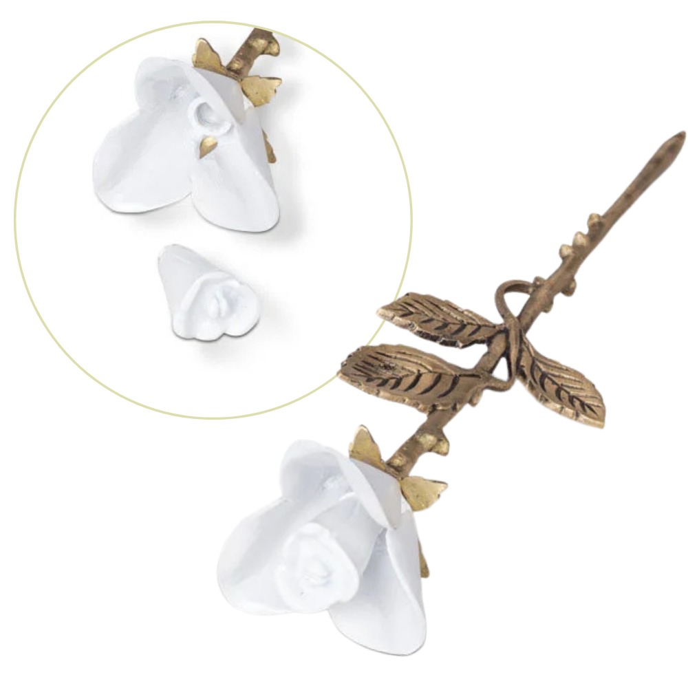 Diese handgefertigte Rose aus Metall verfügt über ein diskretes Fach in der Knospe, perfekt für eine symbolische Menge Asche. Einfach selbst zu befüllen und sorgfältig gestaltet, um eine bleibende Erinnerung zu schaffen.