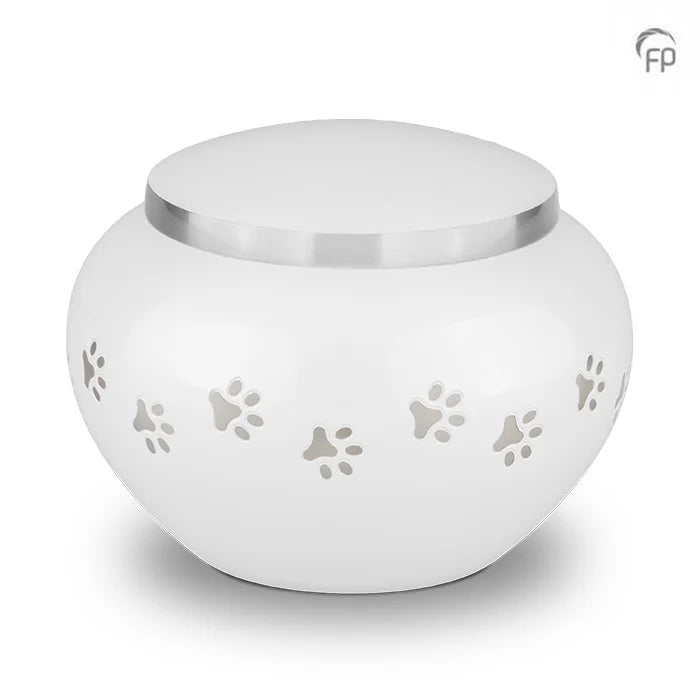 HU 193 S Metall Tierurne klein Diese Porzellan-Katzenurne wurde als warmes Andenken an ein geliebtes Haustier gestaltet. Die weichen, abstrakten Formen vermitteln Trost und laden dazu ein, einen Moment innezuhalten und an all die schönen Augenblicke zu denken, die Sie gemeinsam erlebt haben. Jedes Mal, wenn Sie die Urne betrachten, entdecken Sie etwas Neues – eine Erinnerung, ein Gefühl, ein Stück der besonderen Verbindung, die für immer bleibt.