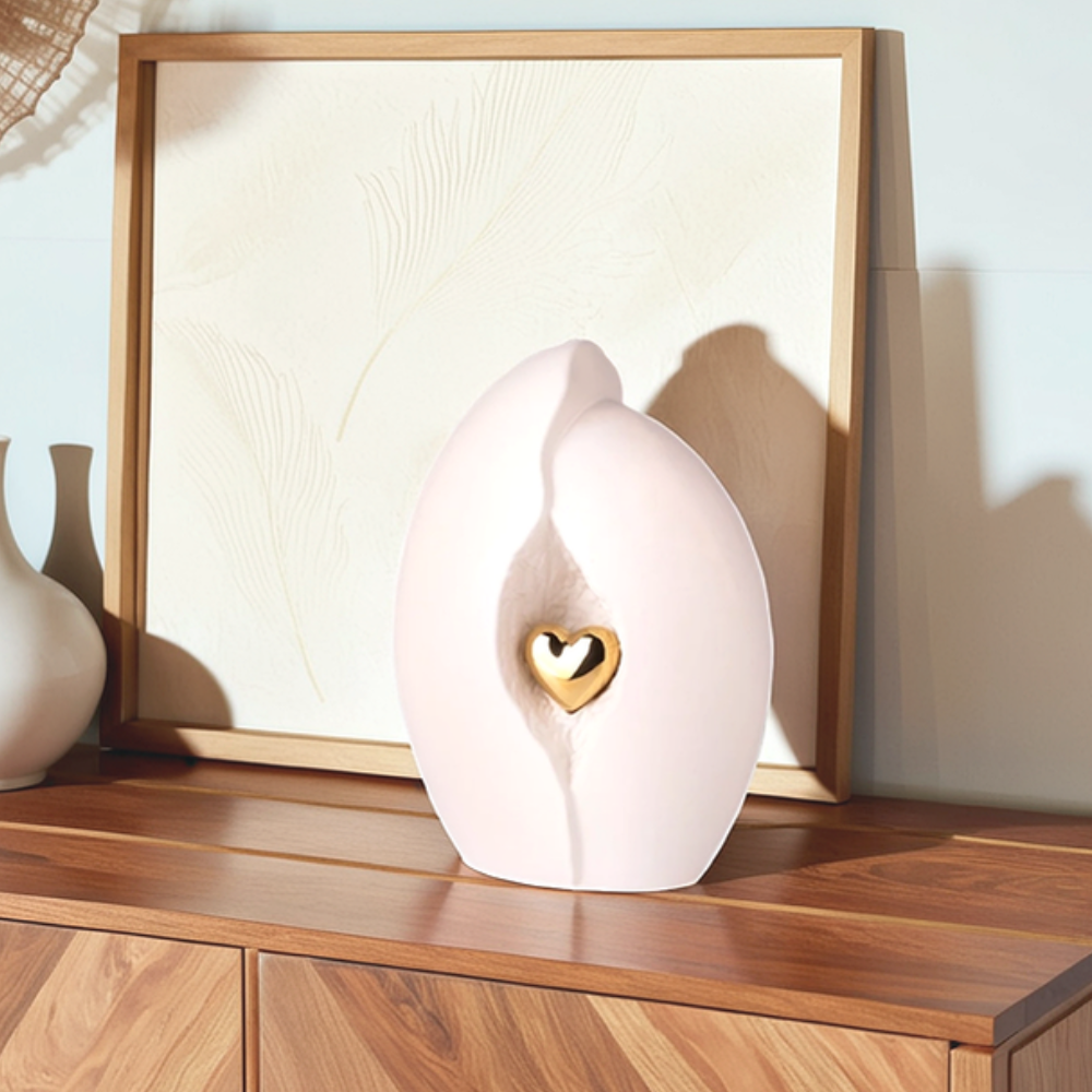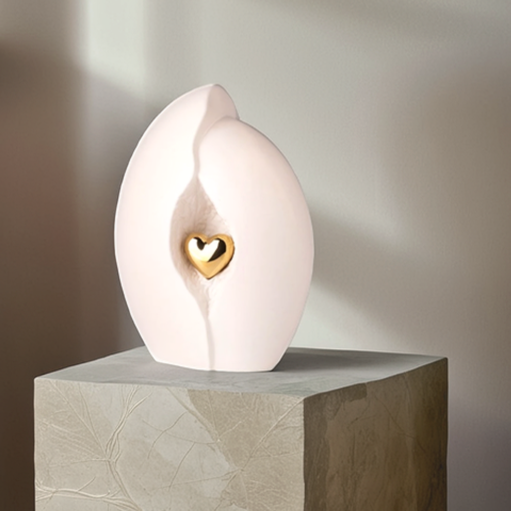 Durch die Öffnung am Boden kann die Asche sicher eingebracht werden. Im Herzen der Urne befindet sich ein kleines, symbolisches Herz als Zeichen der Liebe und Verbundenheit.