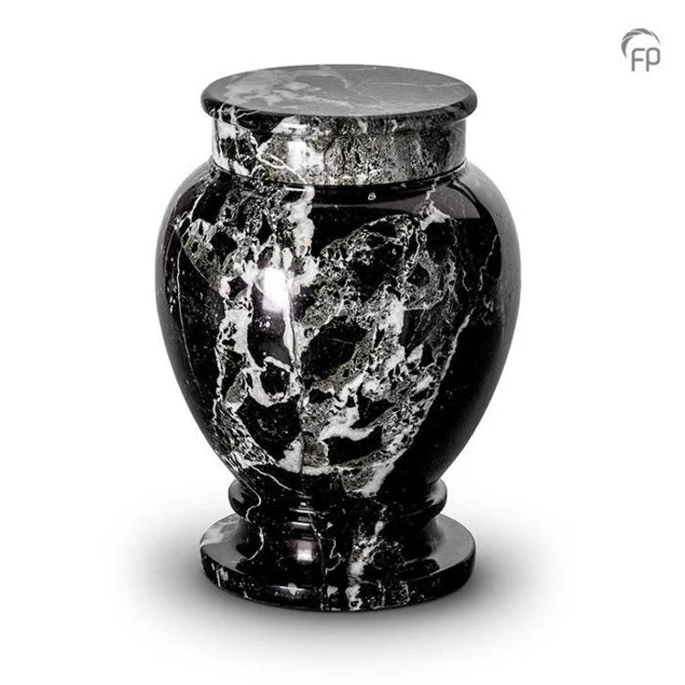 Der hochwertige Marmor für diese Urnen stammt aus asiatischen Steinbrüchen. Große Natursteinblöcke werden aus diesen Steinbrüchen geschnitten und anschließend mit speziellen Formen zu Urnen geformt. Da jeder Natursteinblock seine eigenen, einzigartigen Farbtöne, Kristallstrukturen und Adern aufweist, gleicht keine Urne der Kollektion der anderen. Dies macht die Marmorurnen zu einem vollkommen natürlichen Produkt mit einzigartigem Charakter.