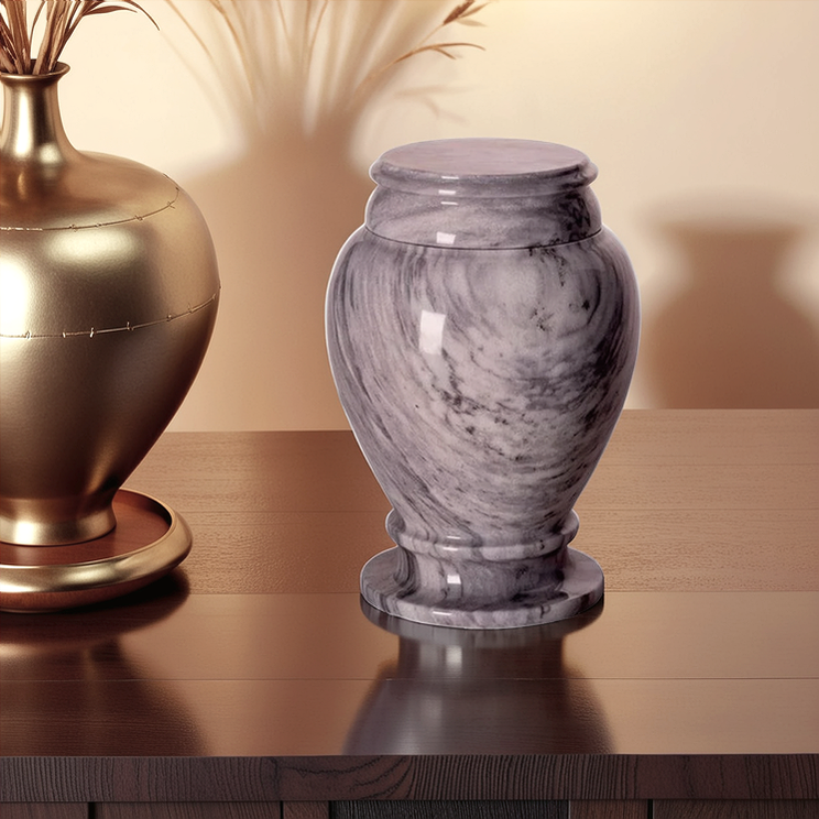 Der hochwertige Marmor für diese Urnen stammt aus asiatischen Steinbrüchen. Große Natursteinblöcke werden aus diesen Steinbrüchen geschnitten und anschließend mit speziellen Formen zu Urnen geformt. Da jeder Natursteinblock seine eigenen, einzigartigen Farbtöne, Kristallstrukturen und Adern aufweist, gleicht keine Urne der Kollektion der anderen. Dies macht die Marmorurnen zu einem vollkommen natürlichen Produkt mit einzigartigem Charakter.
