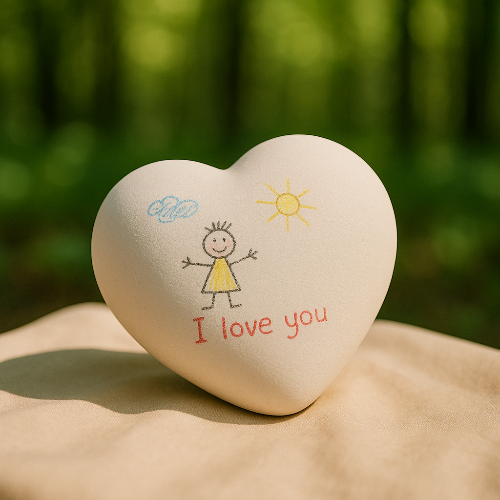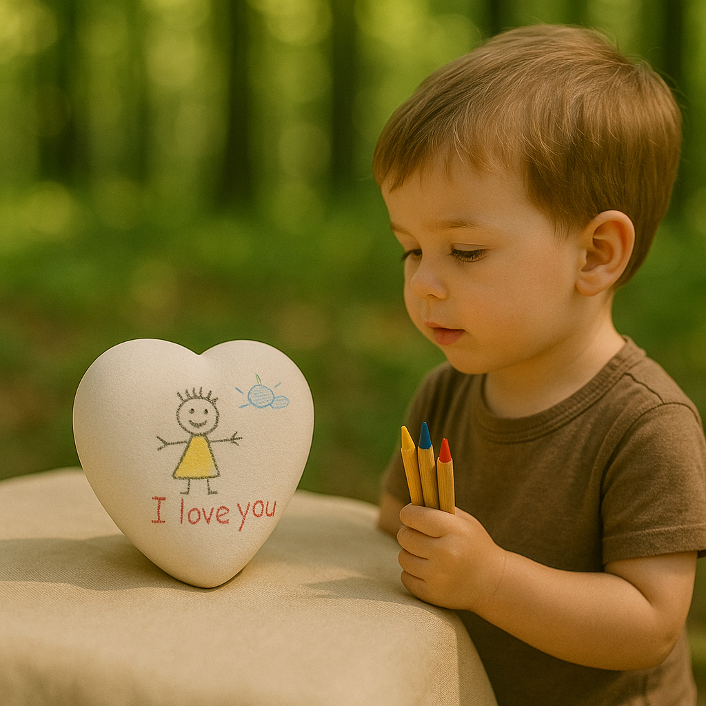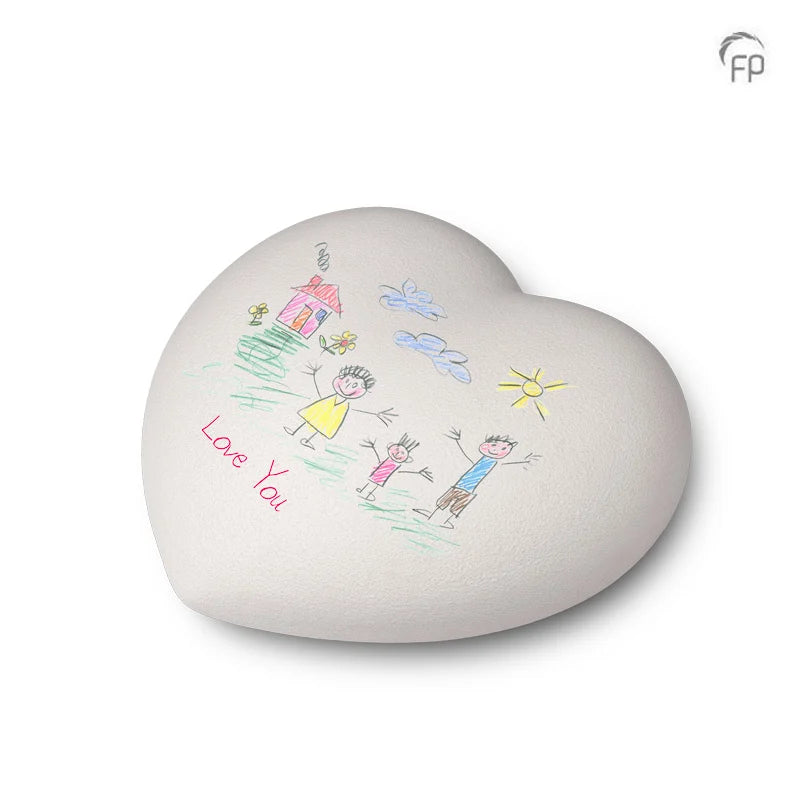 Fantasy Herz-Urne – inklusive Buntstifte Diese herzförmige Porzellanurne bietet Kindern die Möglichkeit, ihre Liebe und Erinnerungen auf ganz persönliche Weise auszudrücken.